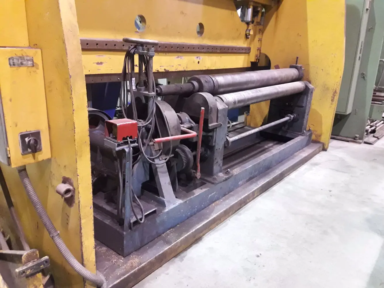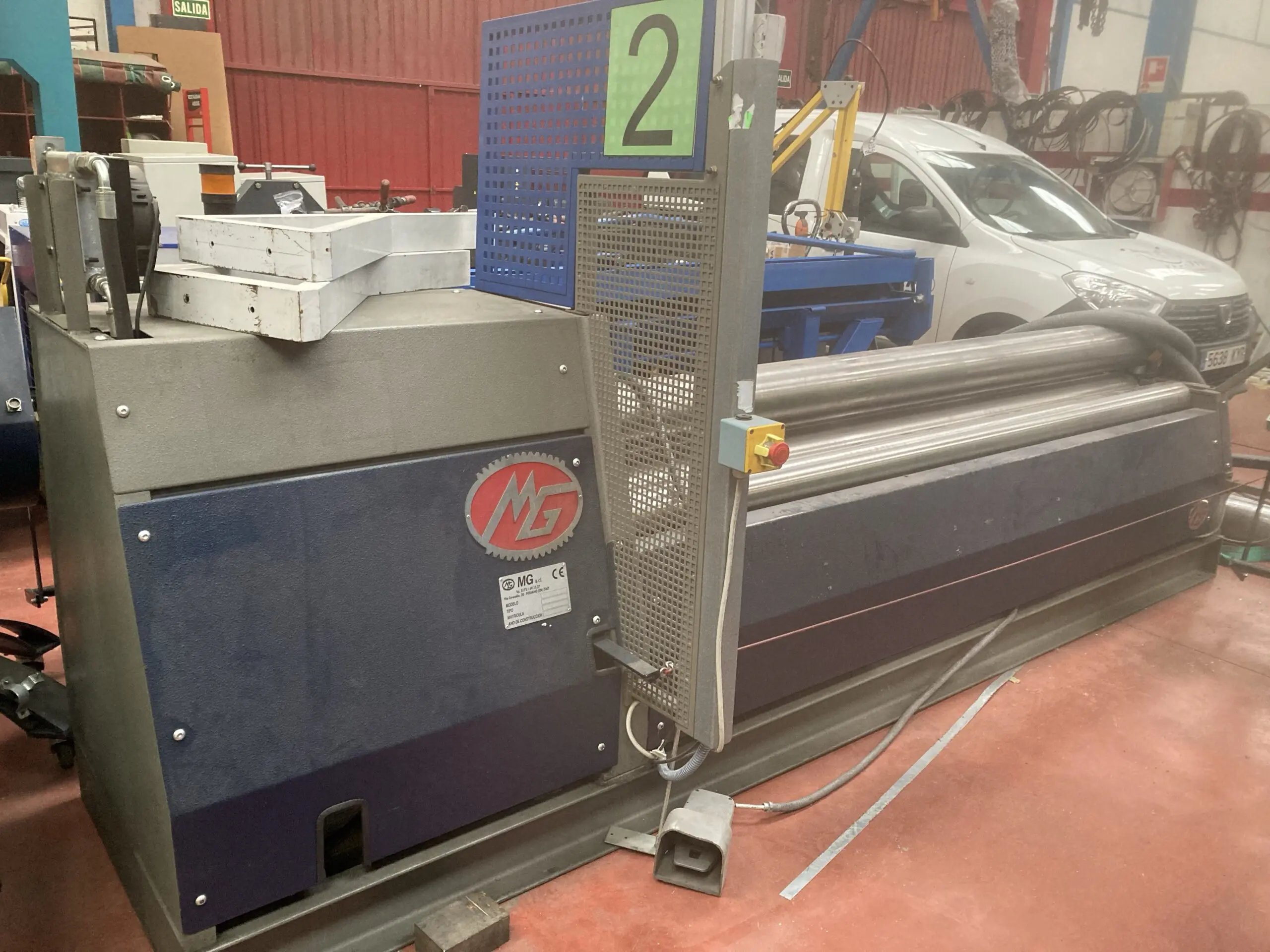 Cilindro mecánico Goyar de 2.500x35mm Características técnicas: Longitud de curvado: 2.500mm Capacidad de precurvado: 35mm Capidad de curvado: 45mm Diámetro de rodillos: 480mm Potencia motor: 50cv Velocidad de curvado: 4,5m/min Peso aproximado: 30.000kgs. Otros detalles:
