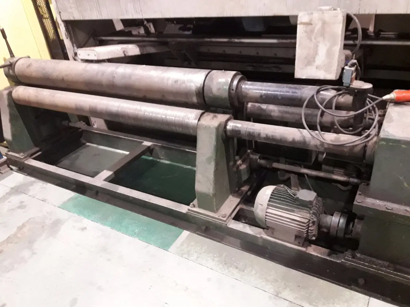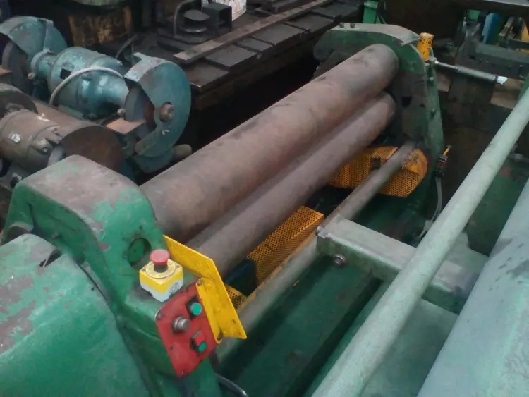 Cilindro motorizado de 1050x2mm Cilindro motorizado de segunda mano con ejes asimétricos y pedal a distancia. Características técnicas: Longitud de ejes: 1.050mm Diámetro de ejes: 60mm Espesor de curvado: 2mm Espesor de precurvado: 1.5mm